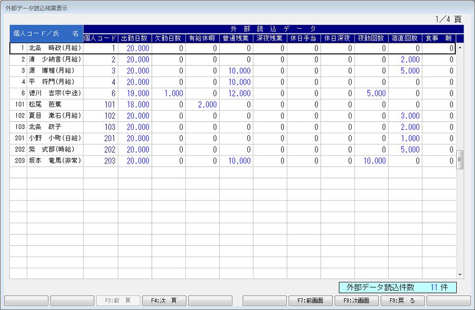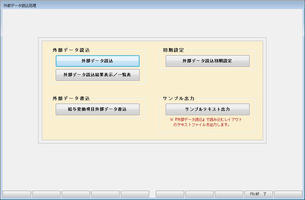 | 外部データ読込 | 外部データ読込結果一覧表 |