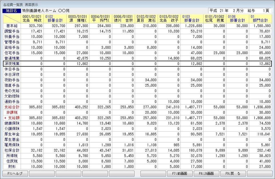| 寒冷地計算 | 寒冷地変動入力一覧表、寒冷地明細書、銀行振込一覧表 金種一覧表、各経費一覧表、社会保険分析表、賞与支払届 |